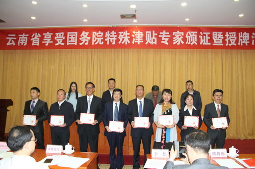 4月12日,在云南省2018年獲國(guó)務(wù)院政府特殊津貼專家頒證暨新設(shè)立專家基層科研工作站和省級(jí)博士后站授牌活動(dòng)會(huì)上,老廠分公司竹葉山坑一工區(qū)采礦一隊(duì)隊(duì)長(zhǎng)、高級(jí)技師楊勇榮獲2018年國(guó)務(wù)院政府特殊津貼。云南省人社廳黨組副書記、副廳長(zhǎng)和江峰、副廳長(zhǎng)邢渭東、省委組織部人才工作處處長(zhǎng)肖峰出席活動(dòng)并為2018年榮獲享受國(guó)務(wù)院政府特殊津貼的48位各行各業(yè)專家人才現(xiàn)場(chǎng)頒發(fā)證書。