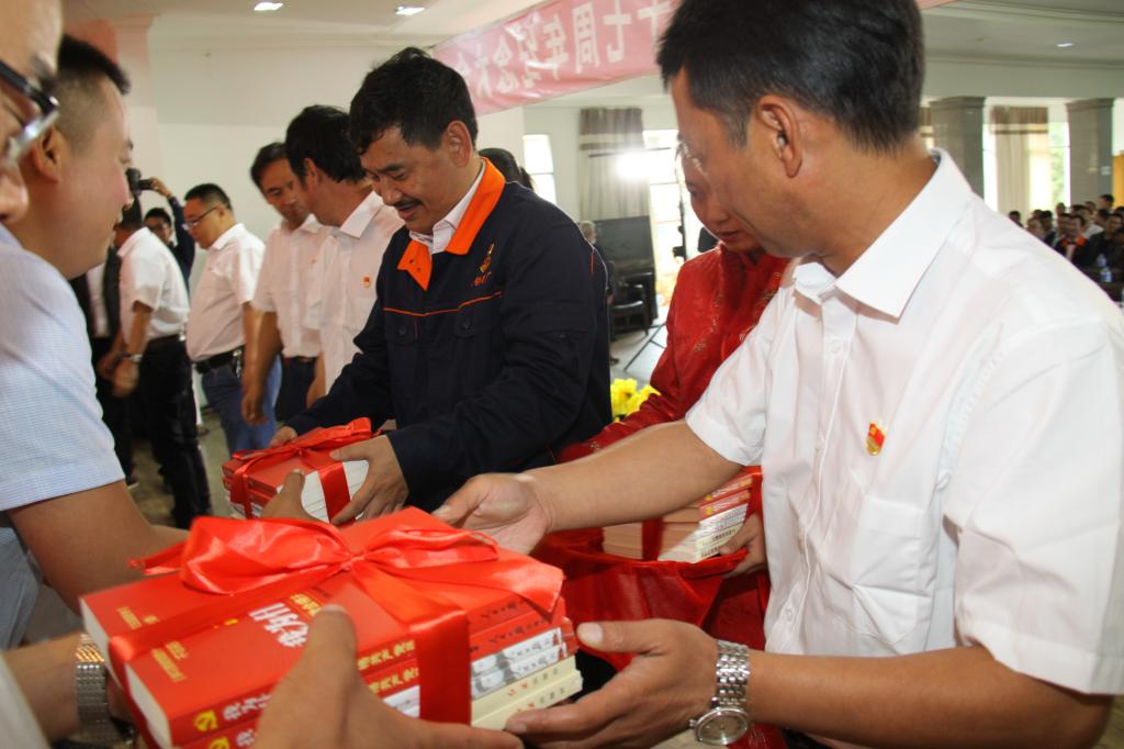 紀念大會上,分公司領導向11個黨總支(直屬黨支部)贈送了黨建書籍。最后,在《沒有共產黨就沒有新中國》的歌聲中結束了紀念大會。